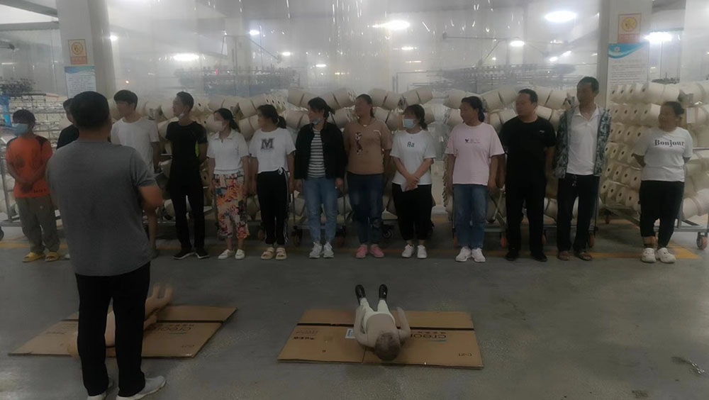 隨后,公司組織員工進(jìn)行了休克、昏迷緊急救護(hù)演練,呼吸心跳驟停緊急救護(hù)演練,所有員工參加了心肺復(fù)蘇操作訓(xùn)練。
